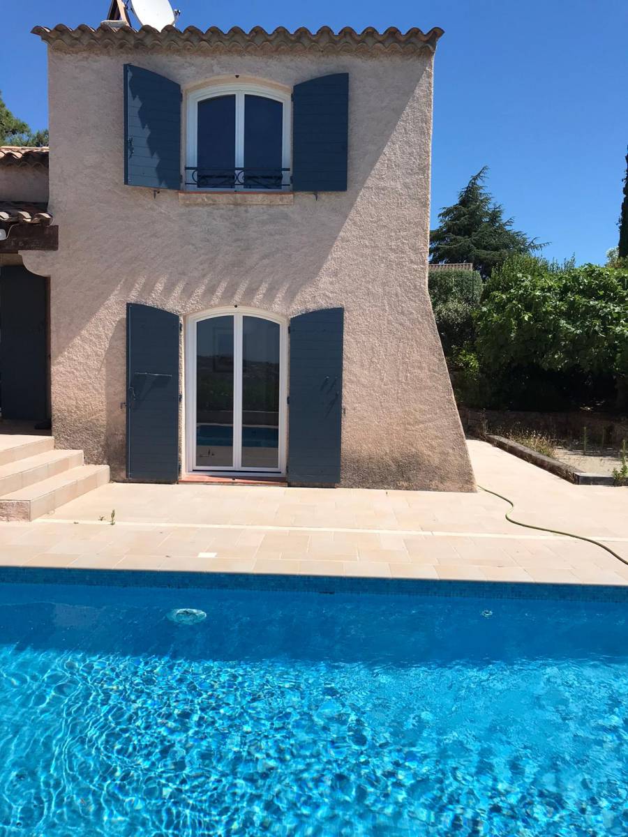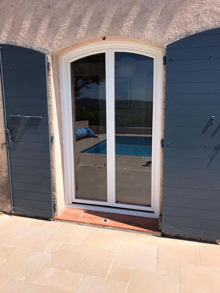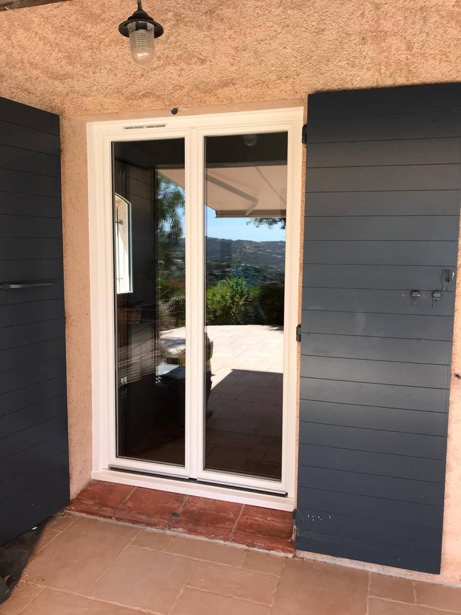 ACL MENUISERIE, votre spécialiste de la fermeture extérieure du bâtiment en aluminium à rupture de pont thermique ou en PVC, intervient pour la rénovation de l'ensemble des menuiseries en bois avec simple vitrage d'une maison par des menuiseries en PVC avec double vitrage isolant. Le chantier se situe sur la commune des Issambres dans le Var.