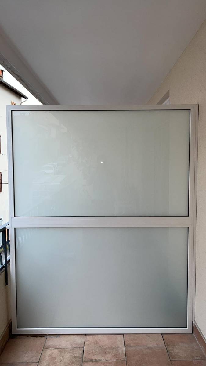 Le besoin de notre client? Profiter du ravalement de façade dans une copropriété pour faire remplacer des séparatifs de balcon en acier, sur 3 niveaux. En effet, les séparatifs de balcon en acier existants sont devenus vétustes et représentent un danger potentiel. Les séparatifs de balcon en aluminium doivent être vitrés avec une finition opale afin de préserver l'intimité des copropriétaires. Le coloris Ral de l'aluminium des séparatifs de balcon doit être identique à celui des garde-corps en aluminium. Compte tenu des dimensions des séparatifs de balcon en aluminium vitrés, ces derniers doivent être équipés d'une traverse intermédiaire.