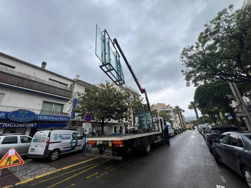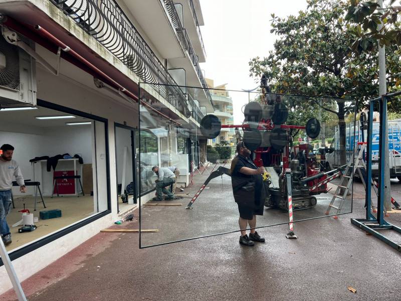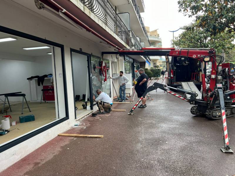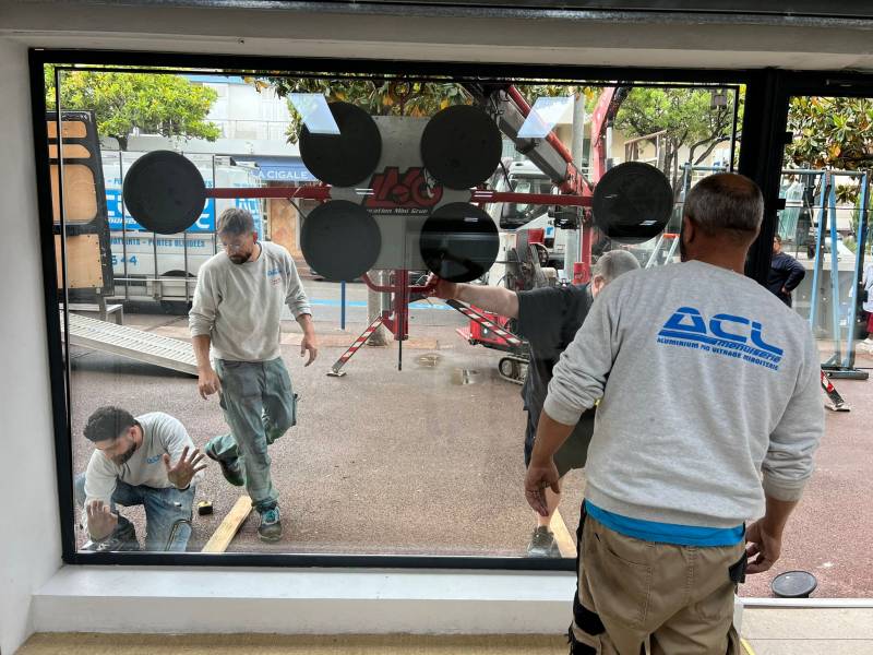 Le besoin de notre client? Faire remplacer les vitrines de son magasin qui sont actuellement équipées de simples vitrages. Faire installer en rénovation des menuiseries en aluminium à rupture de pont thermique sur mesure équipées de double vitrage et dans un coloris moderne. Améliorer la qualité énergétique de son local commerciale en faisant mettre en place des menuiseries en aluminium avec de bonnes performances acoustiques et thermiques. Les vitrages doivent être feuilleté afin de garantir la sécurité des biens et des personnes, les vitrines étant de grandes dimensions, les vitrages sont très lourds. De ce fait, nous sommes contraints pour ce chantier de faire livrer les vitrages sur place et de les mettre en place à l'aide d'une grue.